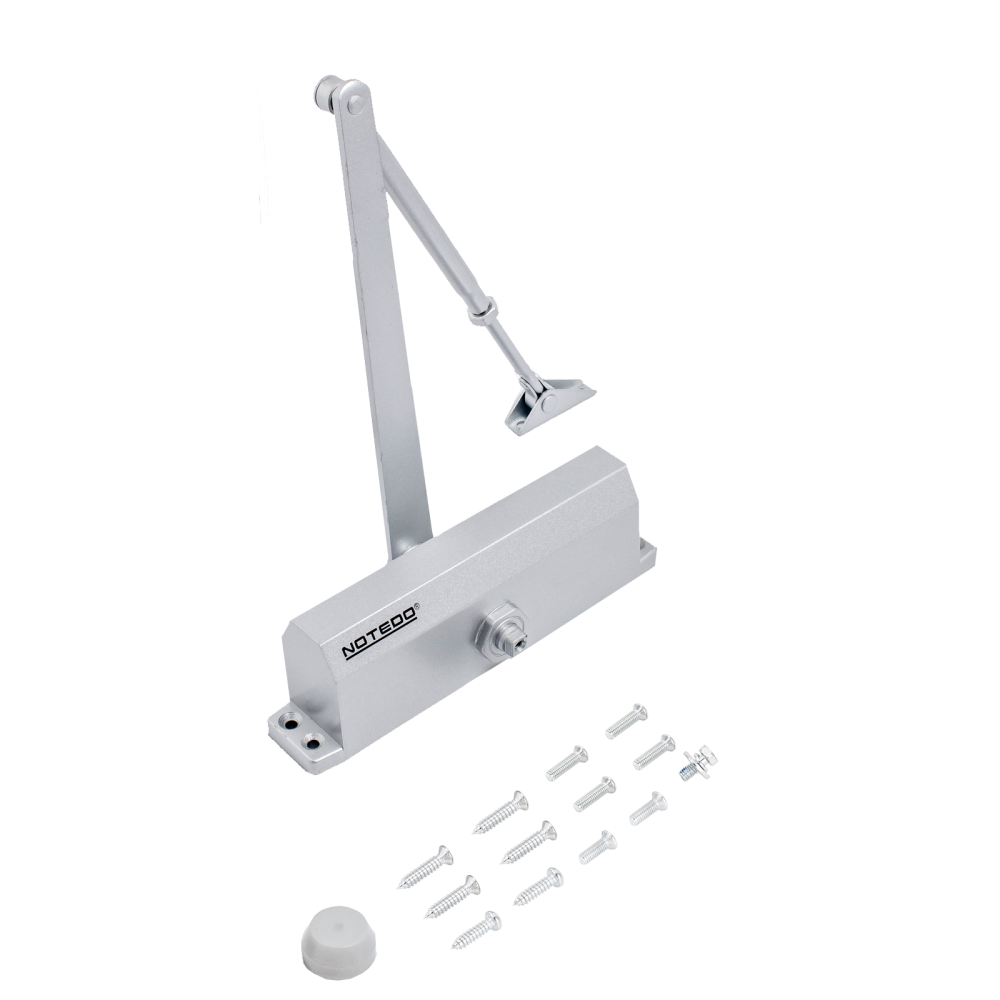 Доводчик с рычагом — наиболее распространенный механизм. Благодаря оптимальному соотношению цены, характеристик и долговечности ее используют для установки на входных и внутренних дверях в помещениях с большим потоком людей. Они предназначены для интенсивной эксплуатации и не выходят из строя при частом открывании и закрывании полотна.