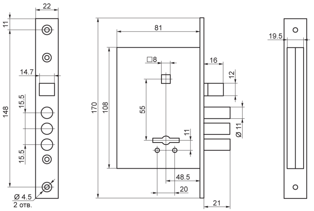 Замок открывается и закрывается изнутри и снаружи ключом.